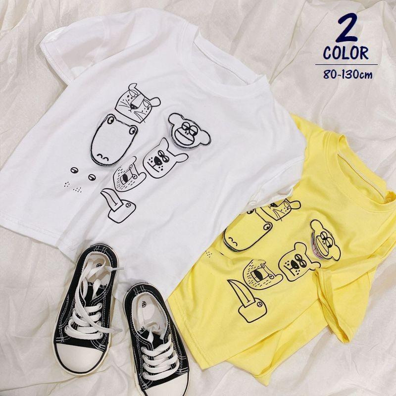 Tシャツ キッズ 子供 トップス ラウンドネック 半袖 動物 アニマル イラスト かわいい おしゃれ お出かけ 男の子 女の子 プラスナオ Paypayモール店 通販 Paypayモール